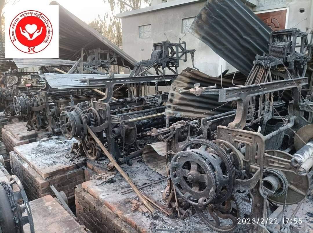 ရွှေဘိုနယ်ထဲက ထူးကြီးကျေးရွာကို စစ်အုပ်စုက ဖေဖော်ဝါရီ ၂၀ရက်ကမီးတင်ရှို့ရာမှာ နေအိမ်နှစ်ရာဝန်းကျင် အပြင် မိရိုးဖလာလုပ်ကိုင်လာတဲ့ ယက္ကန်းစင်တွေကိုလည်း ဖျက်ဆီးခဲ့တာကြောင့် ယက်ကန်းရုံရာချီမီးလောင်ပျက် စီးခဲ့ပါတယ်။