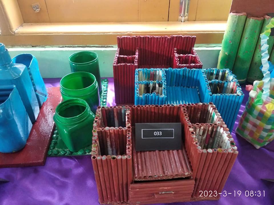 အဲ့ဒီအသုံးအဆောင်တွေ၊အနုပညာလက်ရာတွေကို ကမ္ဘာလုံးဆိုင်ရာပြန်လည်တီထွင်သုံးစွဲရေးနေ့ (Global Recycling) ဖြစ်တဲ့ မတ်လ ၁၈ရက် မှာ ဖန်တီးခဲ့ကြတာလို့ မြိုင်မြို့နယ် ပညာရေးဘုတ်အဖွဲ့က ဖော်ပြ လာ ပါတယ်။