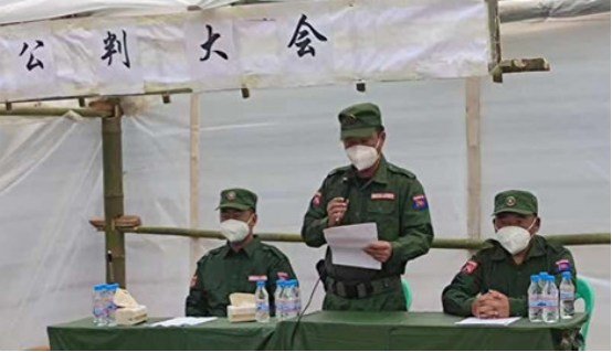 ဖမ်းဆီးရမိထားသူလေးဦးအပေါ် MNDAA အုပ်ချုပ်ရေးအဖွဲ့ယာယီတရားရုံးက စီရင်ချက်ချတဲ့ အစည်းအဝေးကို မူပန်းခရိုင်တနေရာမှာ မေလ ၁ရက်က ပြုလုပ်ခဲ့တာဖြစ်တယ်လို့သိရပါတယ်။အဲ့ဒီအစည်းအဝေးကို MNDAA တပ်ဖွဲ့တွေ၊မဟာမိတ်တပ်ဖွဲ့နဲ့ ဒေသခံအရပ်သားတွေအပါအဝင် စုစုပေါင်း လုနှစ်ရာကျော်တက်ရောက်ခဲ့တယ် လို့လည်း ထုတ်ပြန်ချက်မှာဖော်ပြထားပါတယ်။