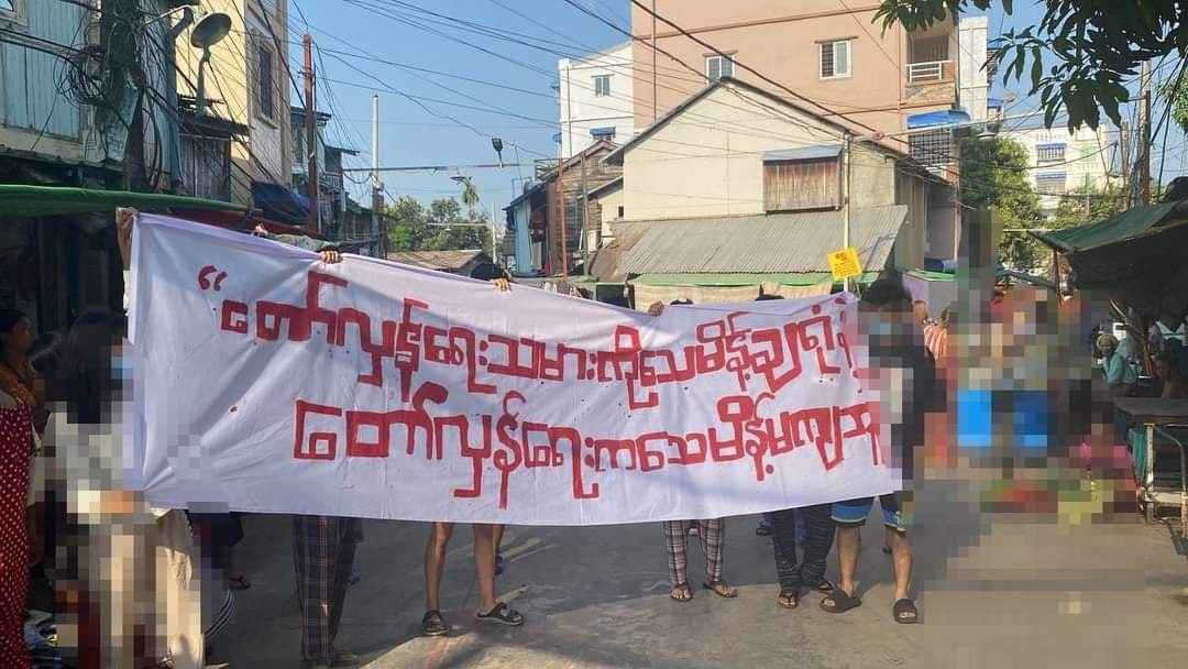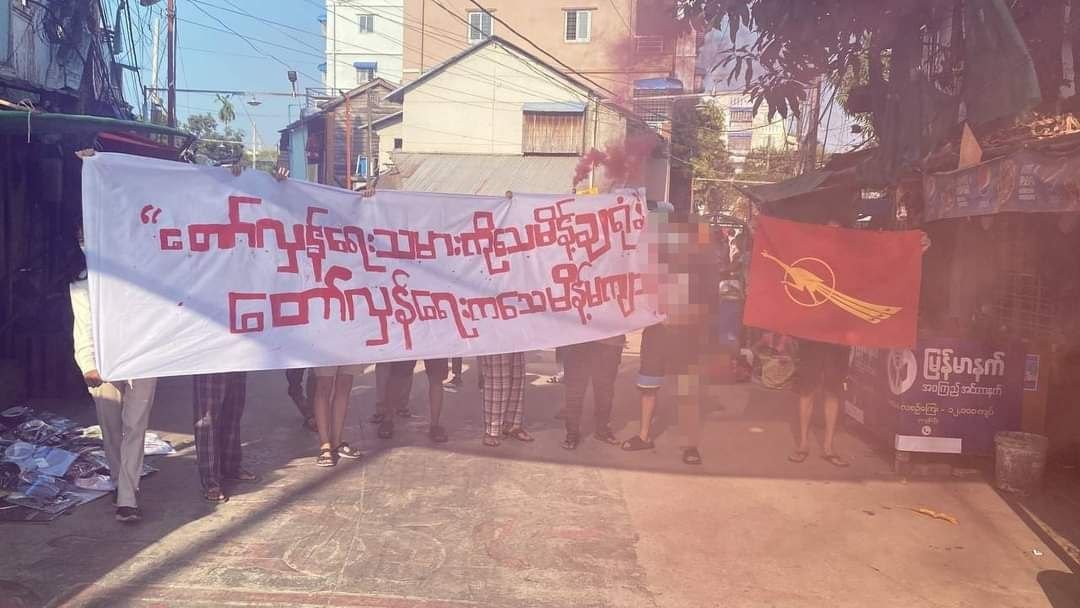 ဗကသကျောင်းသား ကိုကောင်းဆက်ပိုင်အပါအဝင် ဒီမိုကရေစီအရေး လှုပ်ရှားဆောင်ရွက်သူတွေကိုဖမ်းဆီး၊ သေဒဏ်ချမှတ်နေတာတွေကို ဆန့်ကျင်တဲ့အနေနဲ့ ဒီကနေ့မနက်ပိုင်းက ရန်ကုန်မြို့တနေရာမှာ ဗကသ ကျောင်းသားတွေက ဆန္ဒပြခဲ့ကြတယ်လို့သိရပါတယ်။