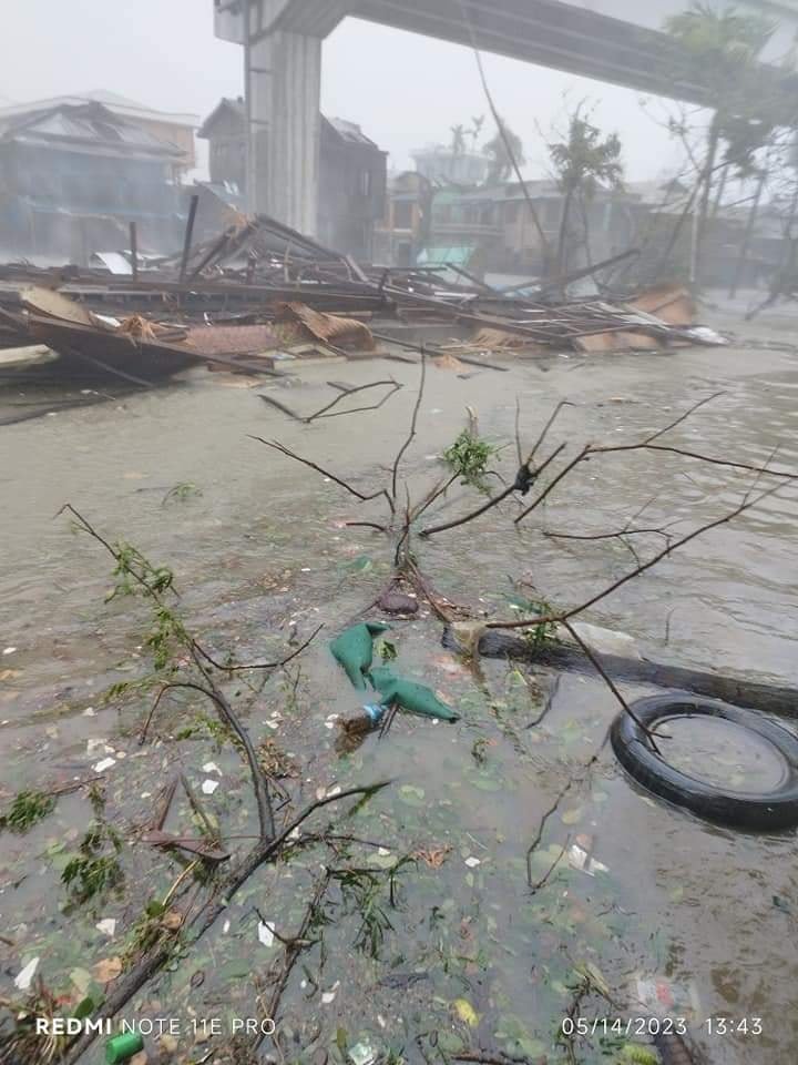 ဒီကနေ့ မေလ ၁၄ ရက်နေ့မှာ ရခိုင်ပြည်နယ်၊ စစ်တွေမြို့ကို မိုခါမုန်တိုင်းဝင်ရောက်လာပြီးနောက်စစ်တွေ၊ မြေပုံ၊ မင်းပြား မြို့နယ်တွေမှာ မုန်တိုင်းကြောင့် အပျက်အစီးတွေဖြစ်ခဲ့တာကိုတွေ့ရတဲ့မြင်ကွင်းတွေပဲဖြစ်ပါတယ်။