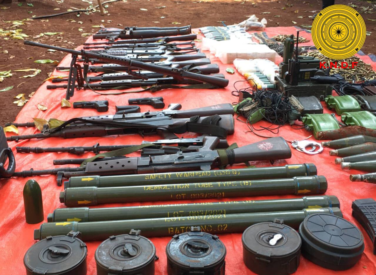 ကရင်နီ(ကယား)ပြည်နယ် ဒီးမော့ဆိုမြို့နယ်၊ အရှေ့ဖက်ခြမ်းမှာ မေလ ၁၄ရက်ကနေ ၂၃ ရက်အထိ ဆယ်ရက်တာ တိုက်ပွဲတွေအတွင်း ရိုင်ဖယ်သေနတ်အများစု၊ ပခုံးထမ်းလောင်ချာ RPG နှစ်လက်အ ပါအဝင်လက်နက်မျိုးစုံ (၁၆)လက်သိမ်းဆည်းနိုင်ခဲ့သလို သုံ့ပန်းနှစ်ဦးအရှင်ဖမ်းမိခဲ့တယ်လို့ ကရင်နီအမျိုးသားများကာကွယ်ရေးတပ်(KNDF)ကထုတ်ပြန်ပါတယ်။