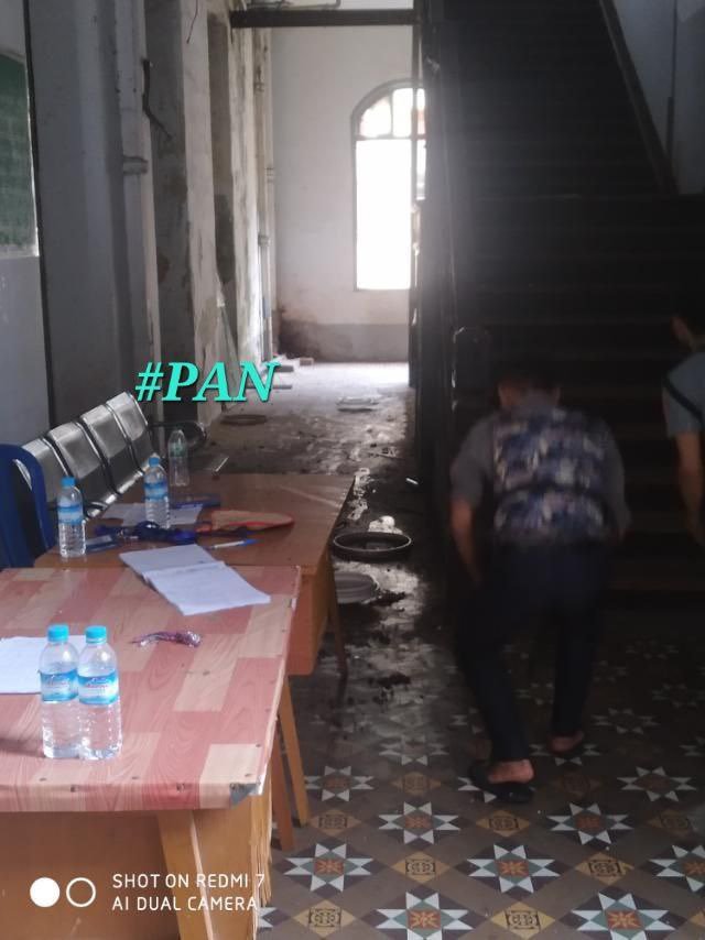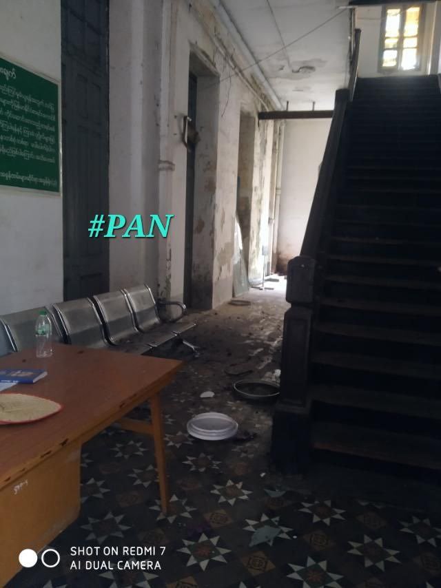 ဒီကနေ့ နေ့လယ်၁၂နာရီခန့်က ၃ရလမ်းထိပ် ပြည်တွင်းအခွန်ဦးစီးဌာနရုံးရဲ့ တတိယအထပ်မှာပေါက်ကွဲခဲ့တာဖြစ်ပြီး ပေါက်ကွဲမှုကြောင့် ပြည်တွင်းအခွန်ဦးစီးဌာနရုံးက ဒုဦးစီးမှူးတဦးအပါအဝင် ငါးဦးဒဏ်ရာရတာဖြစ်ပါတယ်။
