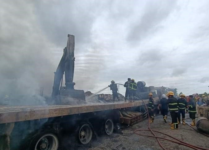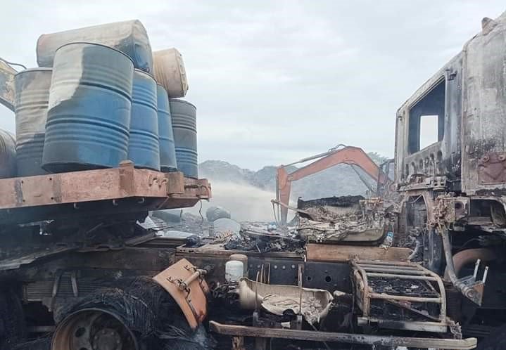 “ပစ္စည်းတွေကများတယ်၊ကျင်းအရင်တူးပြီး ကားပေါ်ကနေပစ္စည်းတွေကို ဘတ်ဟိုးနဲ့သယ်ပြီး မြုပ်နေ ကြ တာ၊ ဘတ်ဟိုးက ကျင်းထဲ ပစ္စည်းတွေကို ခွက်နဲ့ဖိတဲ့အချိန်မှာ ပေါက်ကွဲမှုဖြစ်တာ ကားသုံးစီးလုံးတော့ မီး လောင် ဆုံး ရှုံးသွားတယ်” လို့ အဲ့ဒီမီးလောင်မှုကို ငြှိမ်းသတ်ရာမှာ ပါဝင်ခဲ့တဲ့ မီးသတ်တပ်ဖွဲ့ဝင် တဦးက DNA ကိုပြောပါ တယ်။