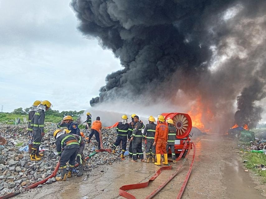 ဒီကနေ့ မနက်ပိုင်း ထိန်ပင်အမှိုက်ပုံမီးလောင်မှုကို Level-2 အဆင့် သတ်မှတ်ပြီး တနာရီဝန်းကျင်ကြာ ငြှိမ်းသတ်ခဲ့ရတယ်လို့ မီးသတ်ဌာန ကလည်း ထုတ်ပြန်ထားပါတယ်။