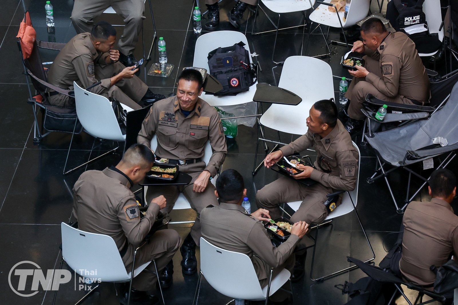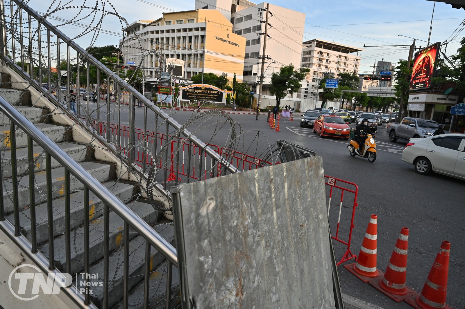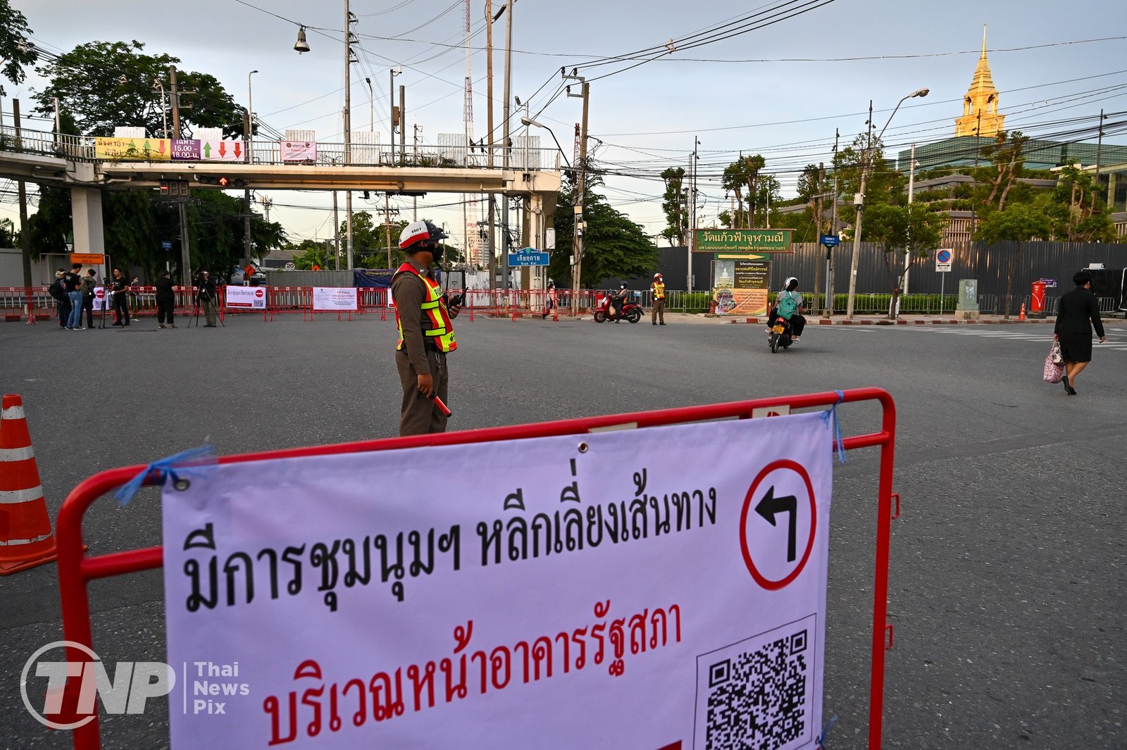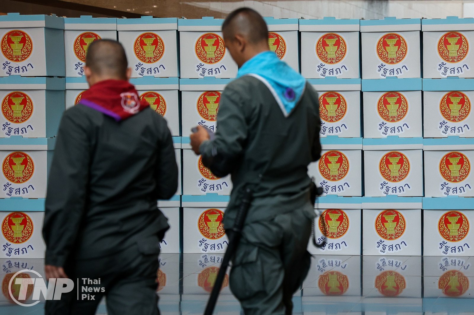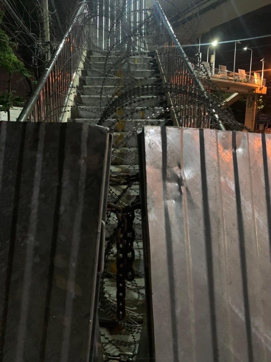ထိုင်းရဲတပ်ဖွဲ့ဝင်တွေက လုံခြုံရေးတင်းကျပ်ထားပါတယ်။ မနေ့ ညပိုင်းကတည်းက ထိုင်းလွှတ်တော်ရှေ့က လမ်းကို ပိတ်ဆို့ဖို့ ကွန်တိန်နာတွေချထားသလို လမ်းဆုံတချို့နဲ့ လူစုလူဝေးနေရာတချို့မှာ သတိပေးဆိုင်းဘုတ်တွေနဲ့ အတက်အဆင်းလမ်းတွေကို ပိတ်ဆို့ဖို့ လုံခြုံရေးအရာရှိတွေကသံဆူးကြိုးတွေလည်းကိုင်ဆောင်ထားတယ်လို့ ထိုင်းသတင်းဌာနတချို့မှာဖော်ပြထားပါတယ်။