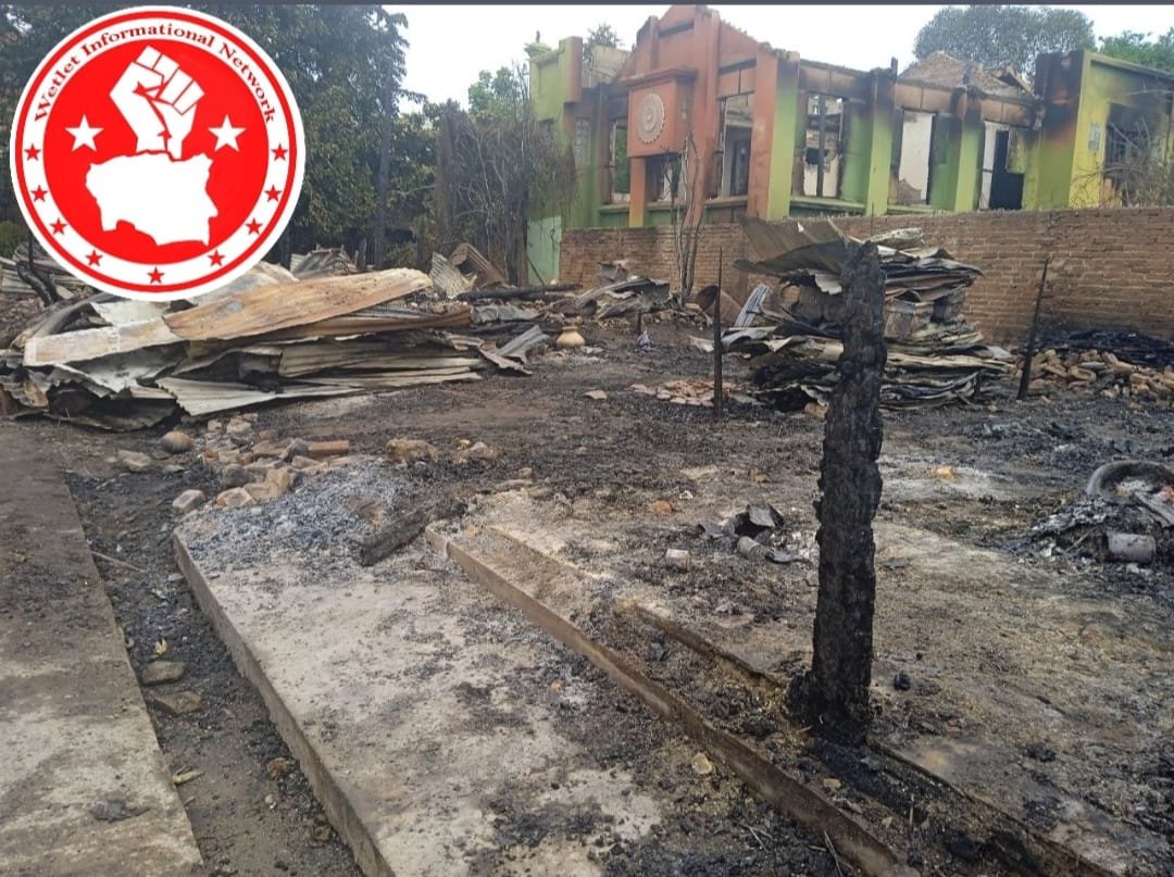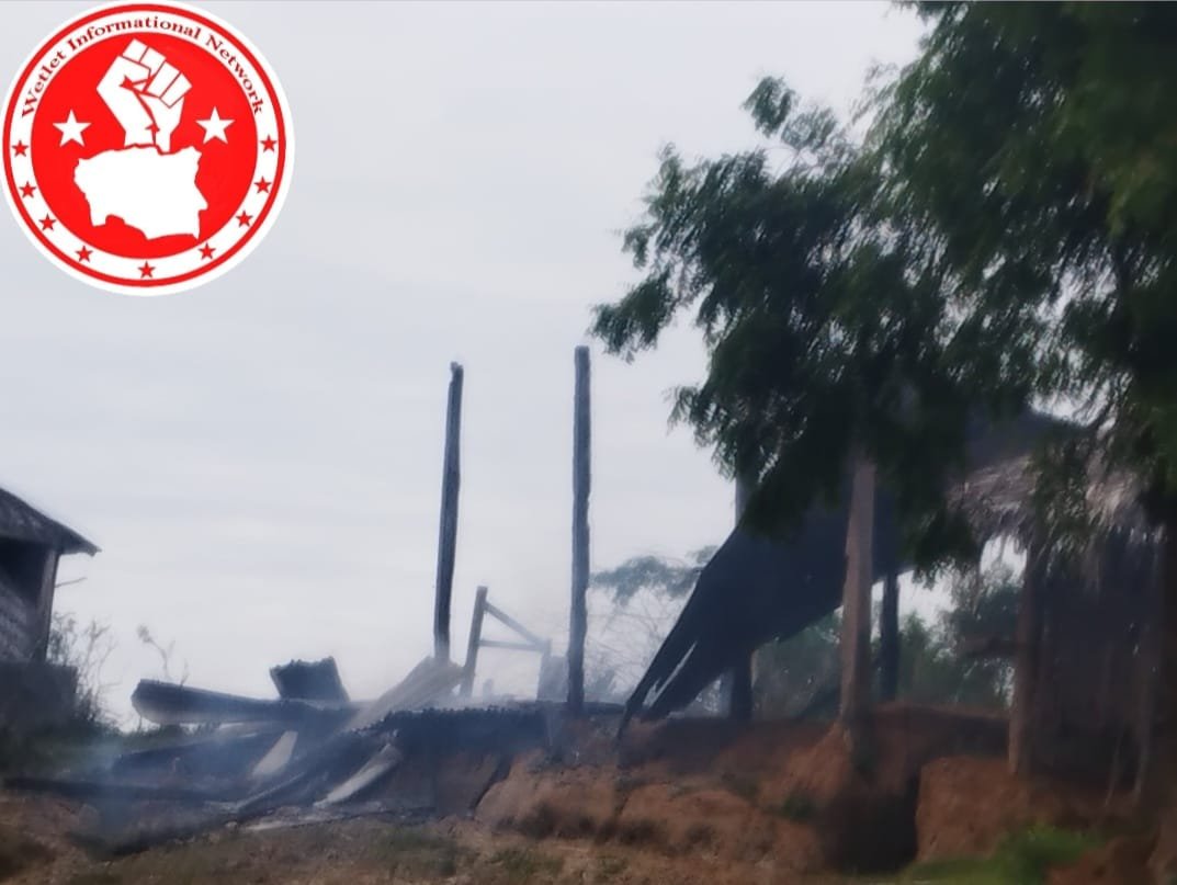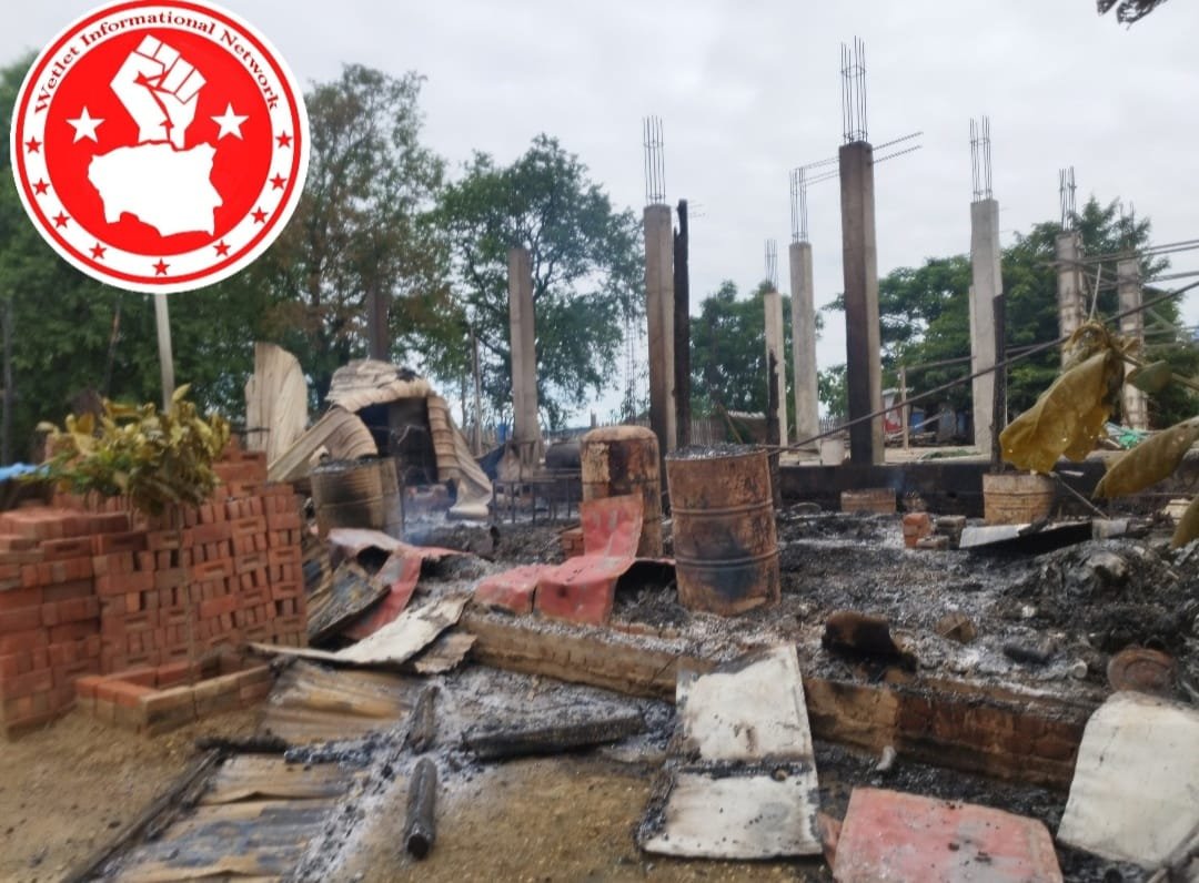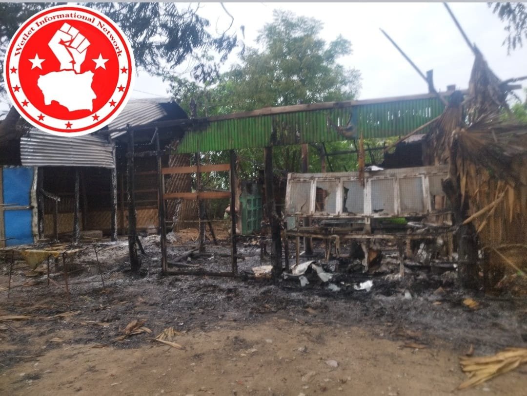 ဝက်လက်နယ် ရှိန်းမကားရွာမှာ စစ်တပ်ကမီးရှို့ လို့နေအိမ်နဲ့စျေးဆိုင်ခန်းတွေပျက်စီး