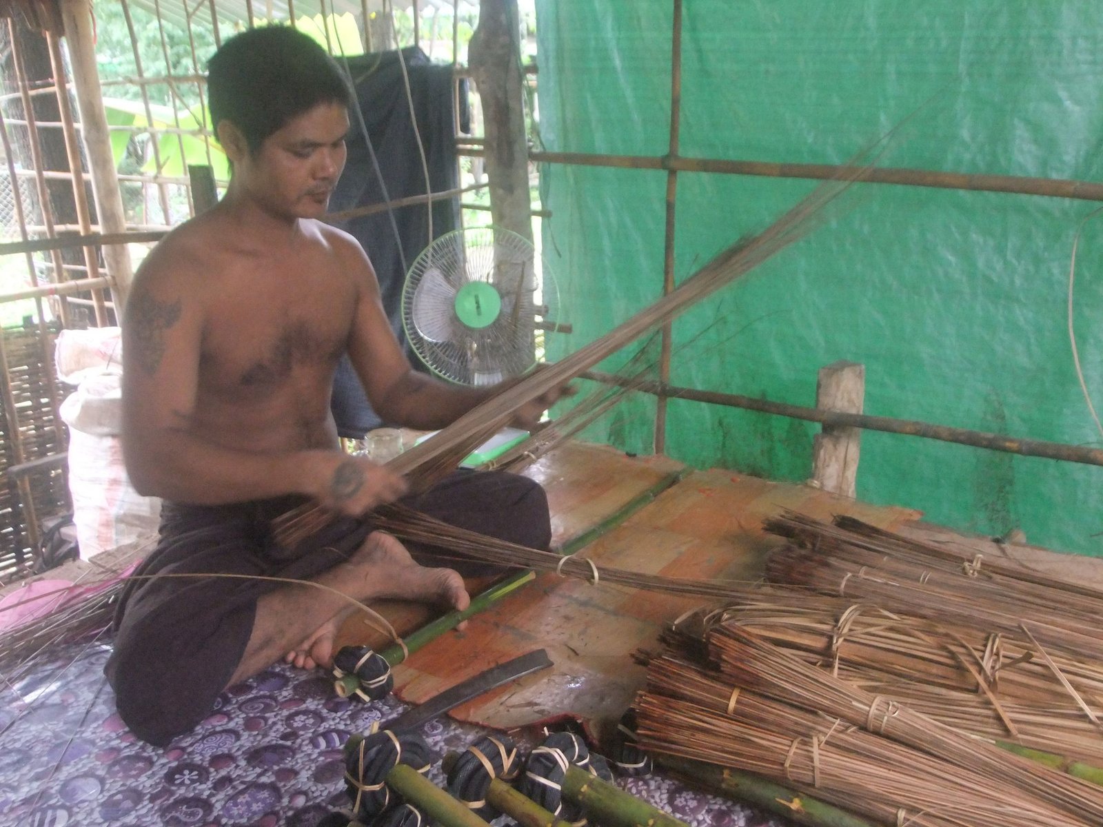 ဒီလုပ်ငန်းမှာ ကုန်ကြမ်း အဖြစ် ထီးရိုးဝါး၊ အုန်းတံ ၊ နဲ့ ဆိုး(ရော်ဘာ)ပြား တို့ကို အသုံးပြုကြတာဖြစ်ပြီး အဓိကကုန်ကြမ်းဖြစ်တဲ့ အုန်းတံနဲ့ ထီးရိုးဝါးတွေ ကိုကုန်ကြမ်းရဖို့ခက်လာတာဖြစ်တယ်လို့ပြောဆိုကြပါတယ်။
