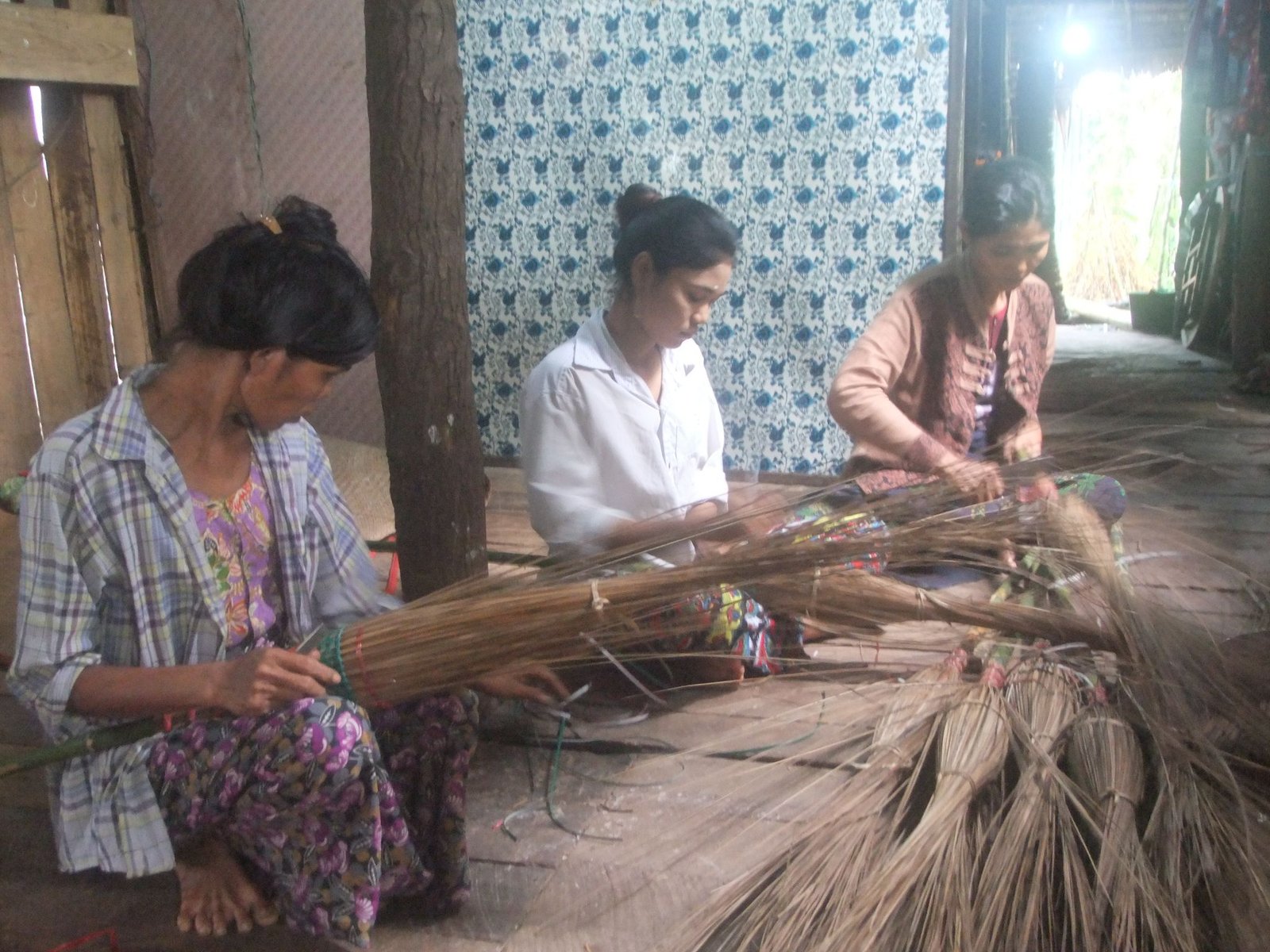 အုန်းတံမြက်စည်းလုပ်ကိုင်ရာမှာလည်း အုန်းတံသင်၊ ထီးရိုးဝါးဖြတ် ၊ နေလှမ်း၊ ခေါင်းရက် စတဲ့လုပ်ငန်းအဆင့်ဆင့်ပြီး ကျွမ်းကျင်လုပ်သားတွေကတော့ တံမြက်စည်းအချောင်း ၅၀ အချောထည်ပြီးရင် လက်ခ တသောင်းရှစ်ထောင်ကျပ်ရကြတယ်လို့လည်း ဆက်သိရပါတယ်။