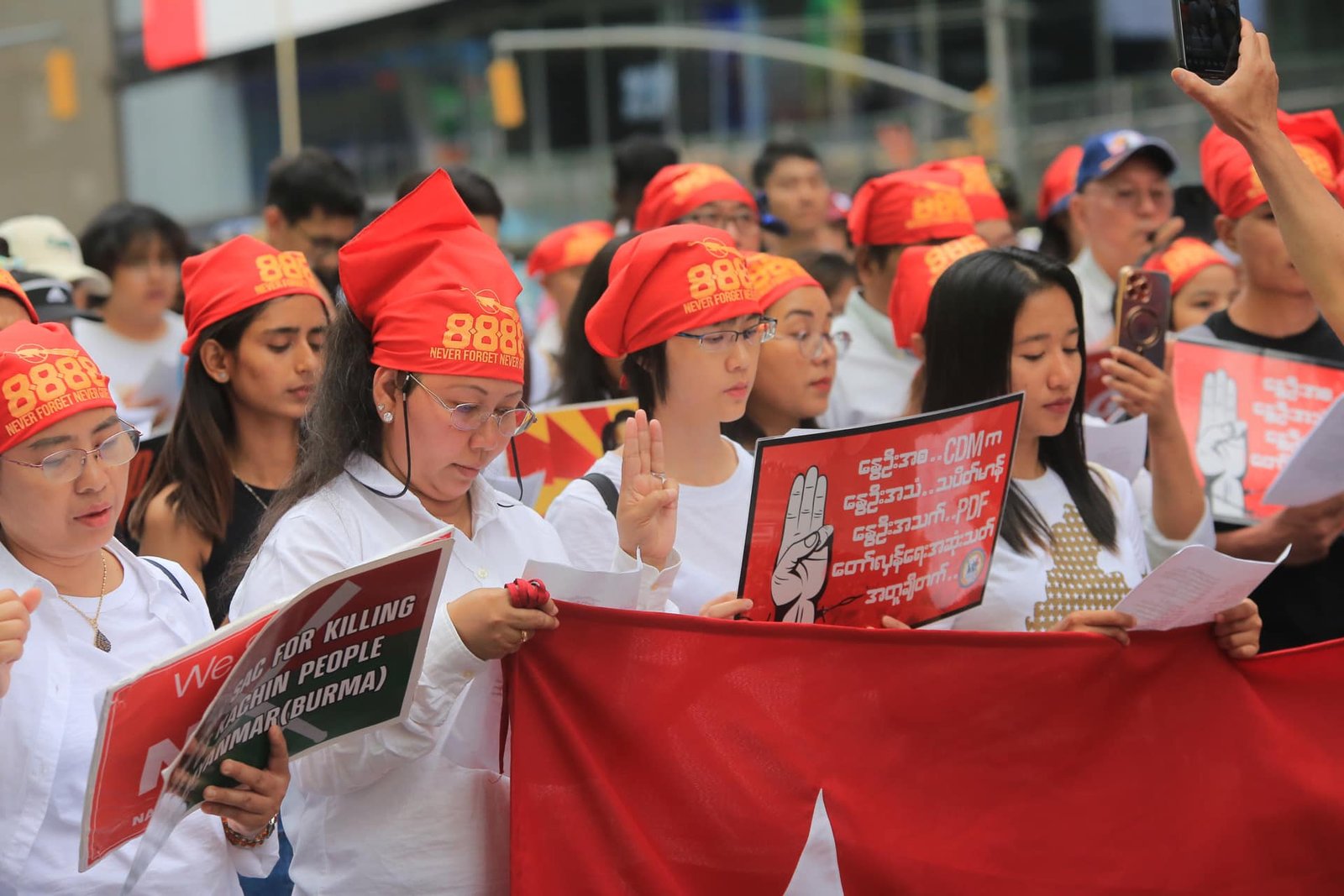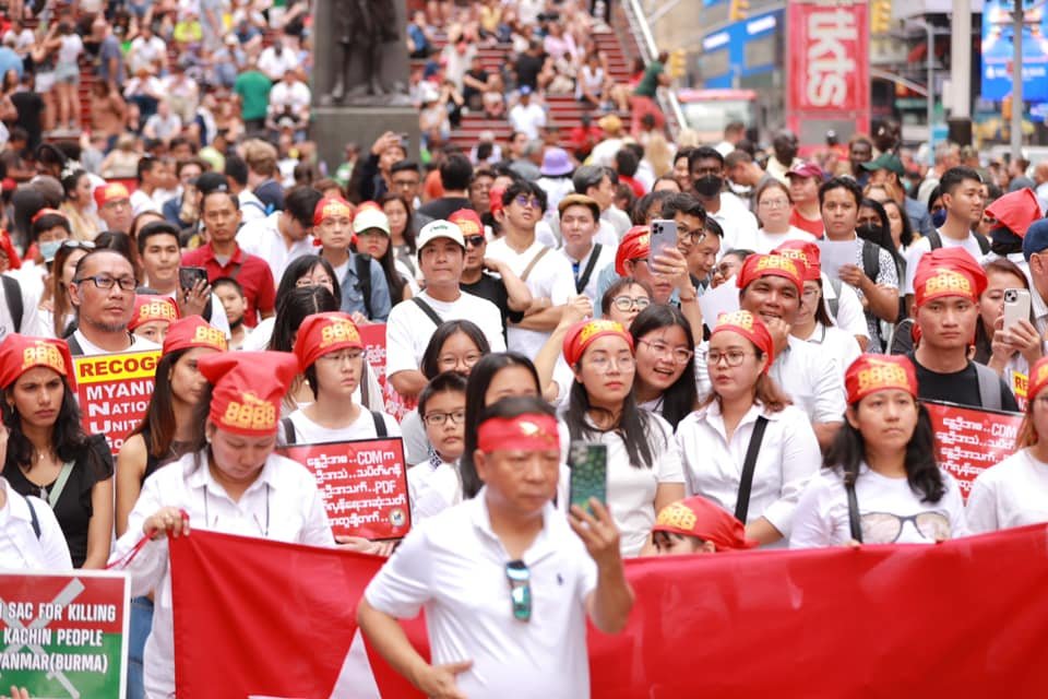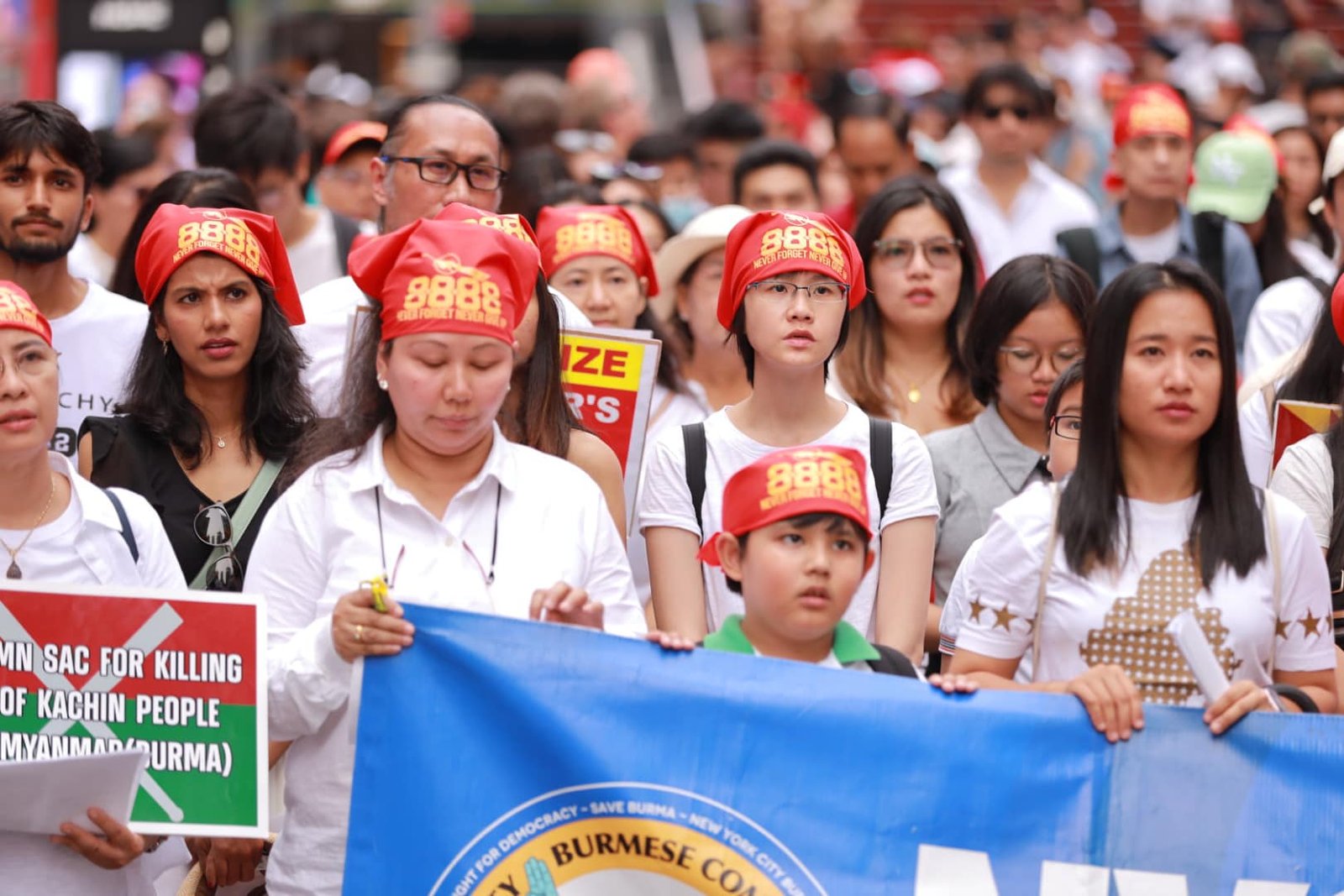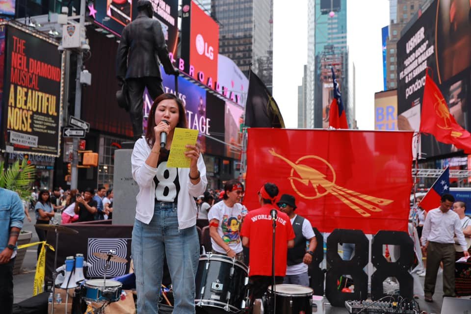 အမေရိကန်ပြည်ထောင်စု၊ နယူးယောက်မြို့မှာ ဩဂုတ် ၅ရက်နေ့ ဒေသခံစံတော်ချိန် ညနေ ၄နာရီမှာ ရှစ်လေးလုံး ၃၅ နှစ်ပြည့်အကြိုအခမ်းအနားကို ပြည်ပရောက်မြန်မာတွေနဲ့တော်လှန်ရေးအင်အားစုတွေကပြုလုပ်ခဲ့ကြပါတယ်။ စစ်အာဏာရှင်တော်လှန်ရေးနဲ့ပတ်သက်တဲ့ ကြွေးကျော်သံတွေ လှုပ်ရှားမှုတွေနဲ့ အတူ အခမ်းအနားကိုပြုလုပ်ခဲ့ပြီး နယူးယောက်အနီးတဝိုက်က မြန်မာပြည်ဖွားတိုင်းရင်းသား ၃၀၀ ခန့် တက်ရောက်ခဲ့ကြတယ်လို့ သိရပါတယ်။