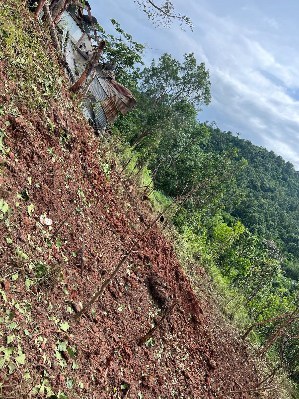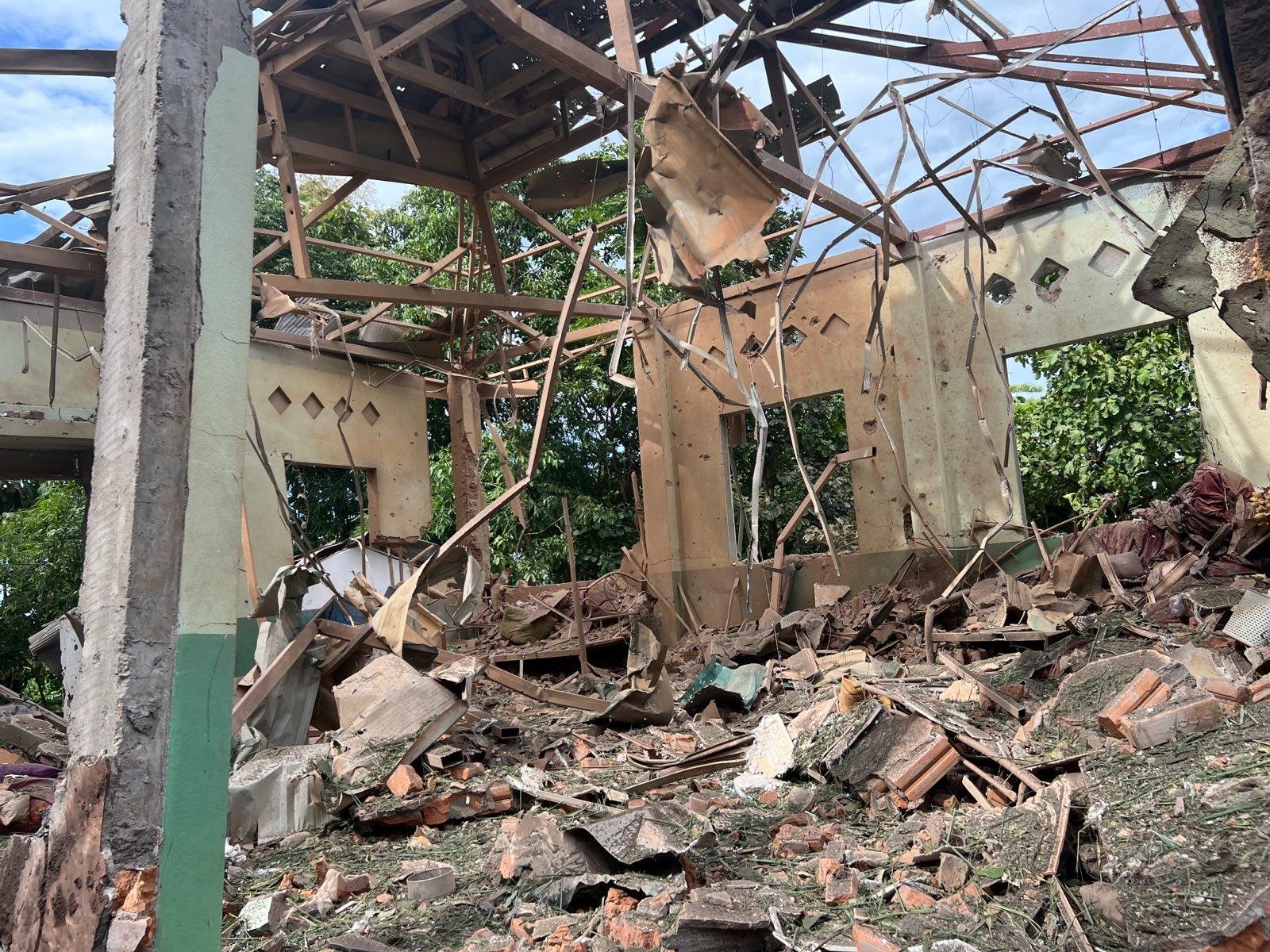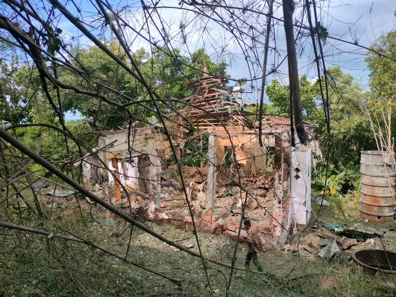 ဒရုန်းနဲ့ ဗုံးသီးချတိုက်ခိုက်ခံရမှုကြောင့် မြဝတီခရိုင် ရဲရုံးအစည်းအဝေးခန်းမနဲ့ ခရိုင်ရဲမှူးနေအိမ်ဘေးတွေမှာ တလုံးစီကျရောက် ပေါက်ကွဲခဲ့တာဖြစ်ပါတယ်။