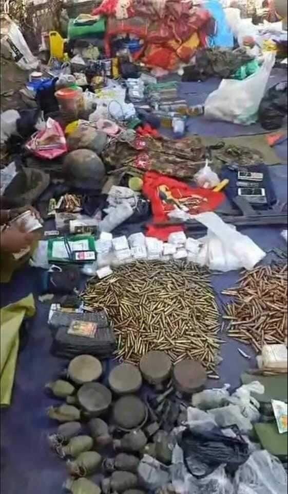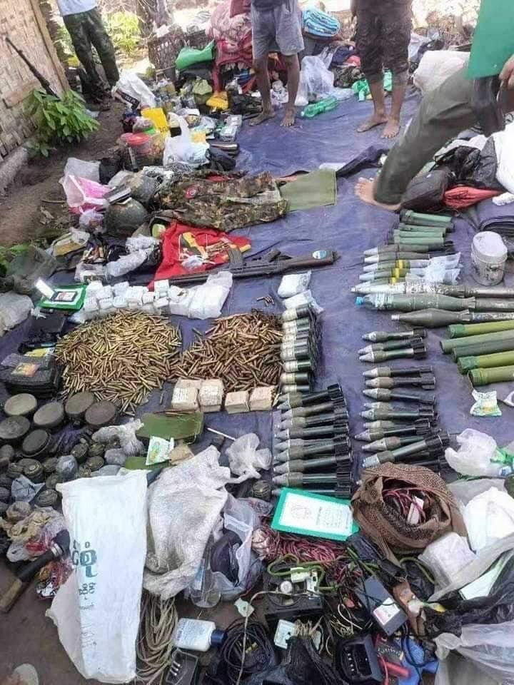 ဒေသကာကွယ်ရေး တပ်ဖွဲ့တွေက ထုတ်ပြန်ထားတဲ့ ဗီဒီယိုမှတ်တမ်းတွေအရ စစ်ကောင်စီတပ်သားတွေ အသုံးပြု လေ့ရှိတဲ့ လက်နက်ခဲယမ်းထည့်ထားတဲ့ ခြင်းတောင်းအများအပြားကို သိမ်းဆည်းနိုင်ခဲ့တယ်လို့ထုတ်ဖော်ပြ သ ထားပြီး သေနတ်၊လက်ပစ်ဗုံး နဲ့ ကျည်ဆံစတဲ့ ခဲယမ်းအမြောက်အများကိုလည်းတွေ့ရပါတယ်။