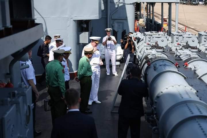 စစ်ရေးလေ့ကျင့်ဖို့အတွက် ရုရှားရေတပ်အရာရှိ ရှစ်ရာ ဟာ ရုရှားပစိဖိတ်ရေတပ်သင်္ဘောအုပ်စုက ရေငုပ် ဖျက် သင်္ဘောနှစ်စီးအပါအဝင် စစ်သင်္ဘောသုံးစီးတို့နဲ့အတူ နိုဝင်ဘာ ၂ ရက်ကတည်းက ရန်ကုန်မြို့ သီလဝါဆိပ်ကမ်းကို ကြိုရောက်နေခဲ့တာလို့ စစ်ကောင်စီ သတင်းစာမှာ ဖော်ပြထားပါတယ်။