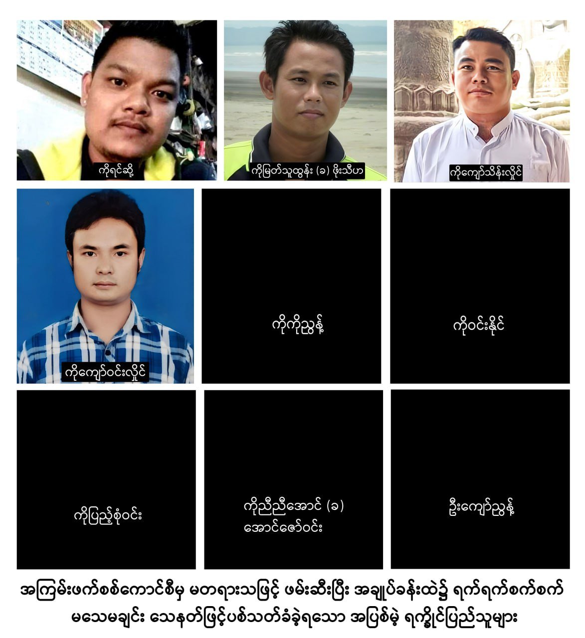 စစ်ကောင်စီဟာ အွန်လိုင်းဆယ်လီတဦးနဲ့ သတင်းထောက်ဟောင်းတဦးအပါအဝင် အရပ်သား ခုနစ်ဦးကို မြောက် ဦးနဲ့ မင်းပြားမြို့တို့က စစ်ကောင်စီတပ်ရင်းတွေထဲ ချုပ်နှောင်ဖမ်းဆီးထားခဲ့ပြီးနောက် အချုပ်ခန်းထဲမှာပဲ မသေ မချင်းပစ်သတ်ခဲ့ကြောင်းအထောက်အထားတွေရှာဖွေတွေ့ရှိခဲ့တယ်လို့ AAက အခုလ ၁၁ရက်မှာ ထုတ်ပြန်ခဲ့ ပါတယ်။