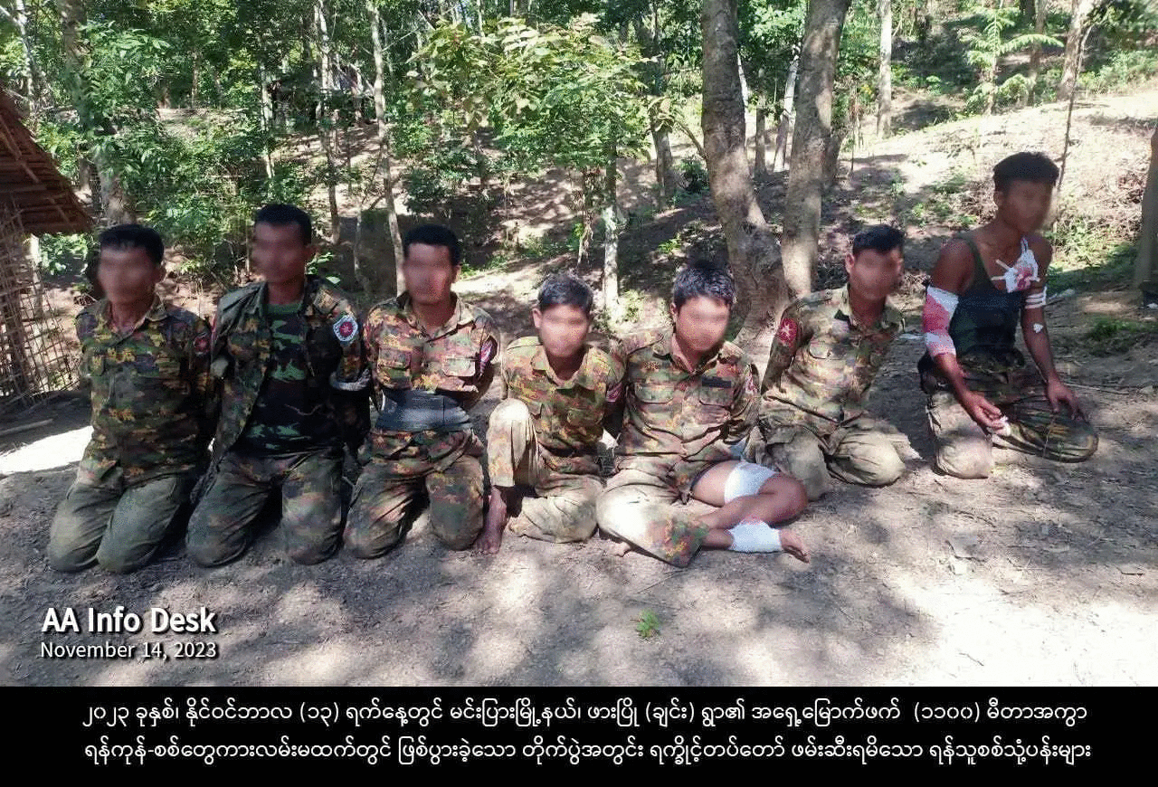 ရခိုင့်တပ်တော် AA ဟာ ပြီးခဲ့တဲ့ နိုဝင်ဘာ ၁၃ရက်ကနေ စတင်ခဲ့တဲ့ ပလက်ဝနဲ့ ရခိုင်ဒေသ တိုက်ပွဲတွေမှာထွက် ပြေးသူတွေ၊လက်နက်ချခဲ့သူတွေအပါအဝင် စစ်သုံ့ပန်းအများအပြားဖမ်းမိခဲ့တယ်လို့ မြေပြင်သတင်းတွေကလည်း ဆိုကြပြီး ဒီနေ့ AAရဲ့ ထုတ်ပြန်ချက်မှာလည်းထောင်ချီလို့ဖော်ပြထားပေမယ့် အရေအတွက်တိတိကျကျ ဖော်ပြတာ တော့မရှိပါဘူး။