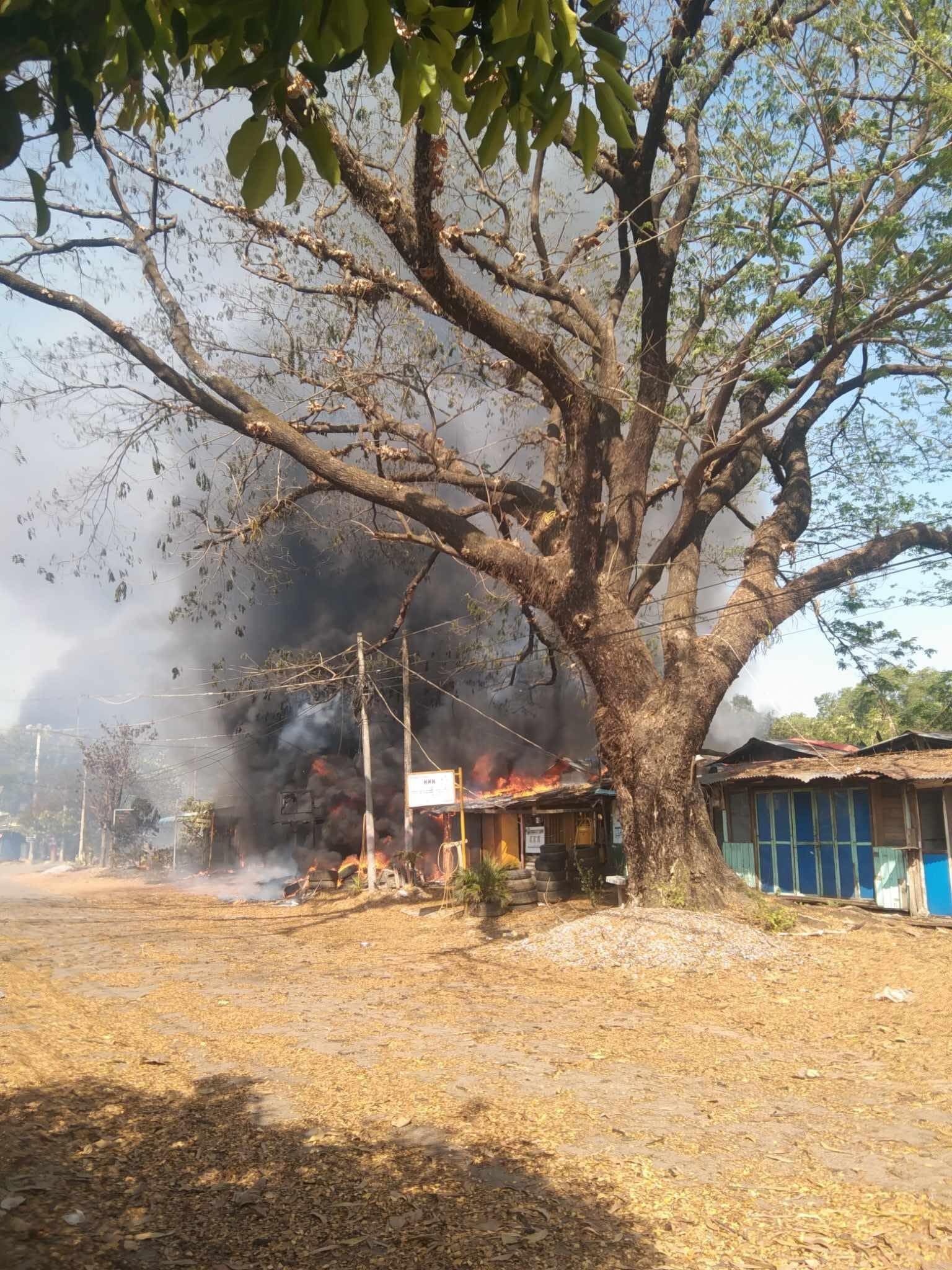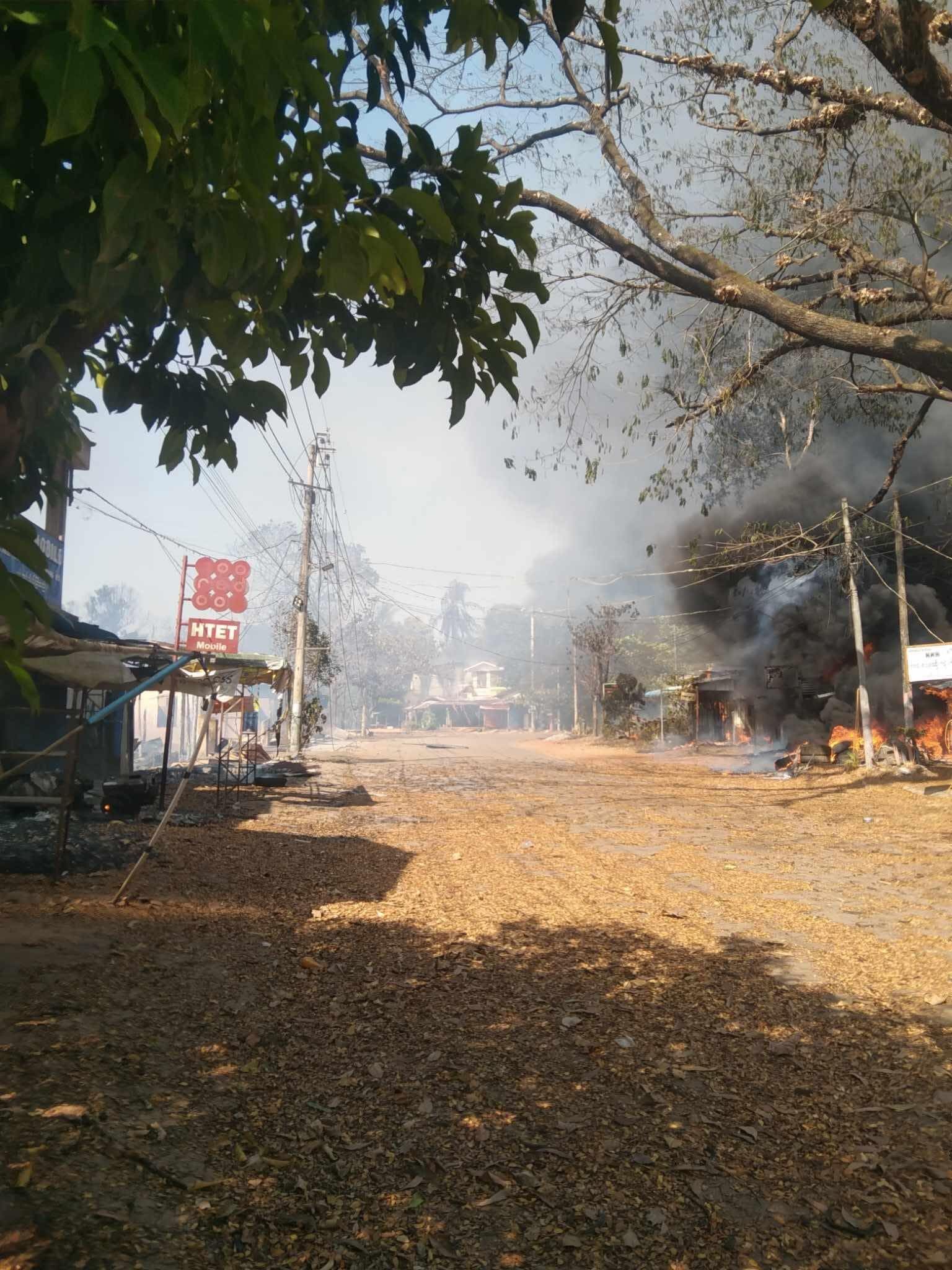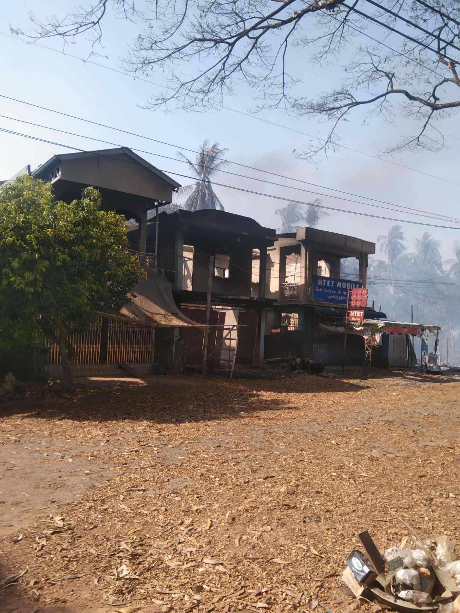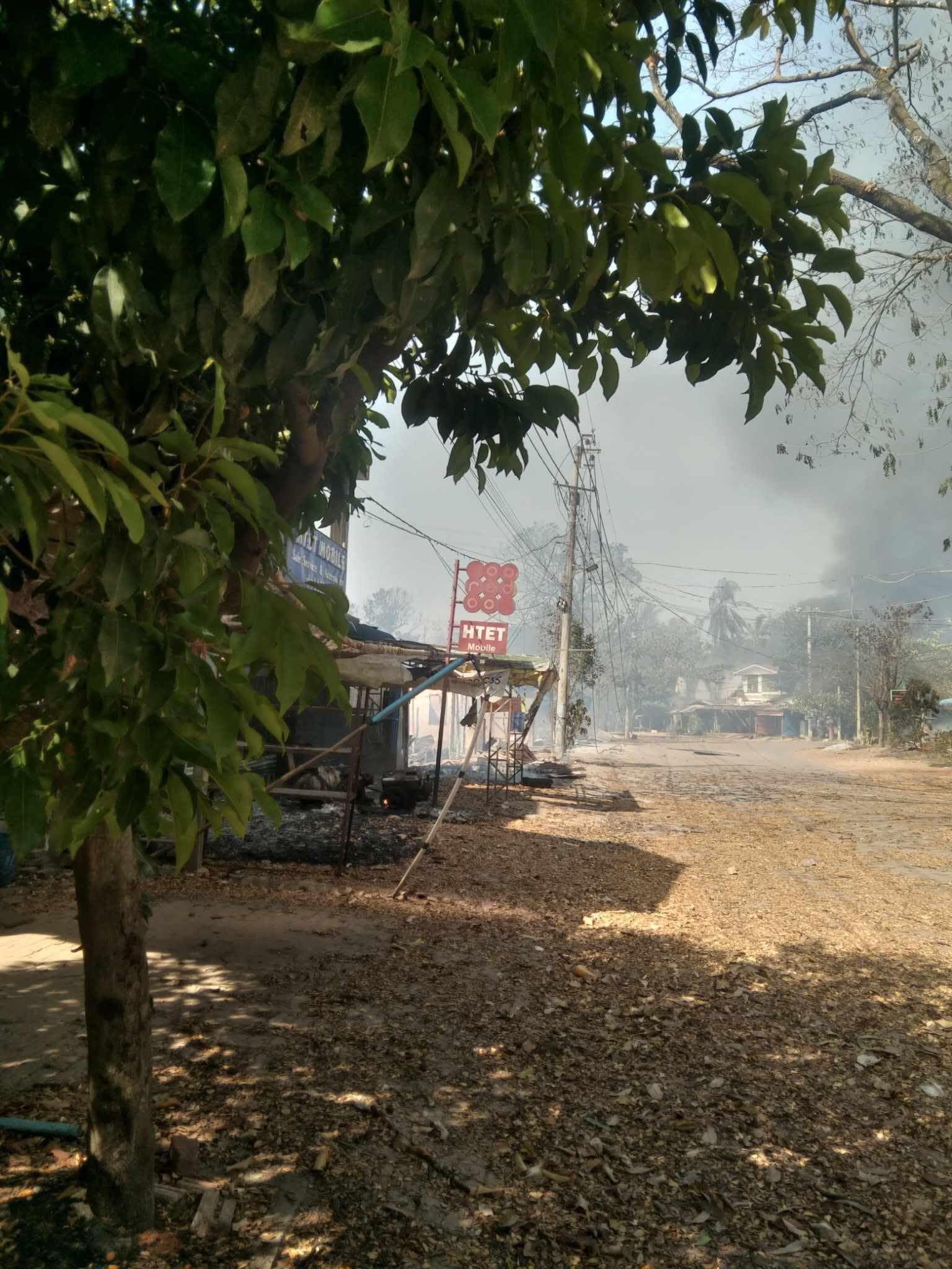 တော်လှန်ရေးအင်အားစုတွေနဲ့ စစ်ကောင်စီတပ်တို့အကြား မြို့ပေါ်မှာ နှစ်ဖက်အပြန်အလှန်ပစ်ခတ်တာ၊ စစ်ကောင်စီဘက်က လေကြောင်း၊လက်နက်ကြီးပစ်ခတ်မှုတွေ အပါအဝင် ရှို့မီးတွေလည်းရှိတာ ကြောင့် နေအိမ်အများအပြား အခုလို မီးလောင်ပျက်စီးသွားရတာလို့ မြို့ခံတွေက ဆိုကြပါတယ်။