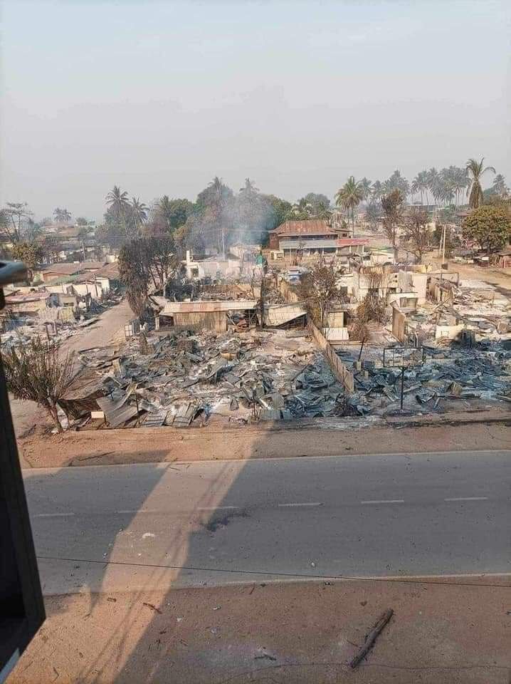 စစ်ကောင်စီနဲ့တော်လှန်ရေးတပ်တွေကြား မြို့ပေါ်တိုက်ပွဲဖြစ်တဲ့မြို့အားလုံးလိုလိုမှာ အခုလိုပဲ နေအိမ်တွေနဲ့ ဈေး တွေ လက်နက်ကြီးထိတာ၊လေကြောင်းကကြဲချတဲ့ ဗုံးကျရောက်ပေါက်ကွဲပြီး ထိခိုက်ပျက်စီးတာတွေရှိခဲ့ပါတယ်။