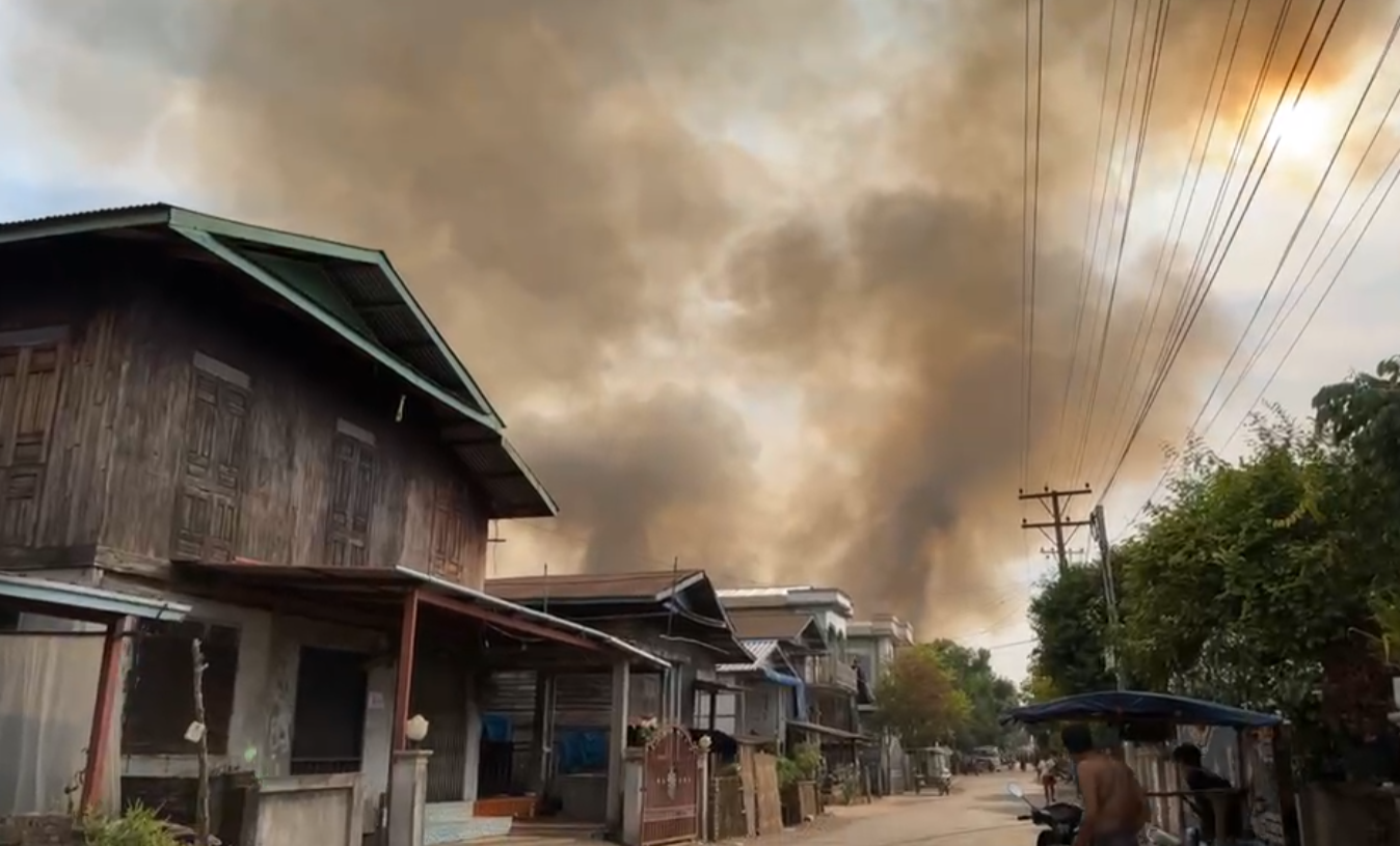 “ရွာနားမှာ တိုက်ပွဲဖြစ်နေတော့ ရွာထဲကို ပစ်လိုက်တာ၊ အဲဒါမီးစလောင်တာပဲ၊ အိမ်တွေလည်း ကပ်နေတော့ မီးအ ရမ်းများနေတယ်၊ မြစ်နားဆိုတော့ လေကလည်း ကောင်းနေတာလေ၊ ခုလောင်နေတုန်းပဲ” လို့ ဓမ္မသကျေးရွာ သား တဦးက ဒီကနေ့ညနေပိုင်းမှာ DNA ကို ပြောပါတယ်။