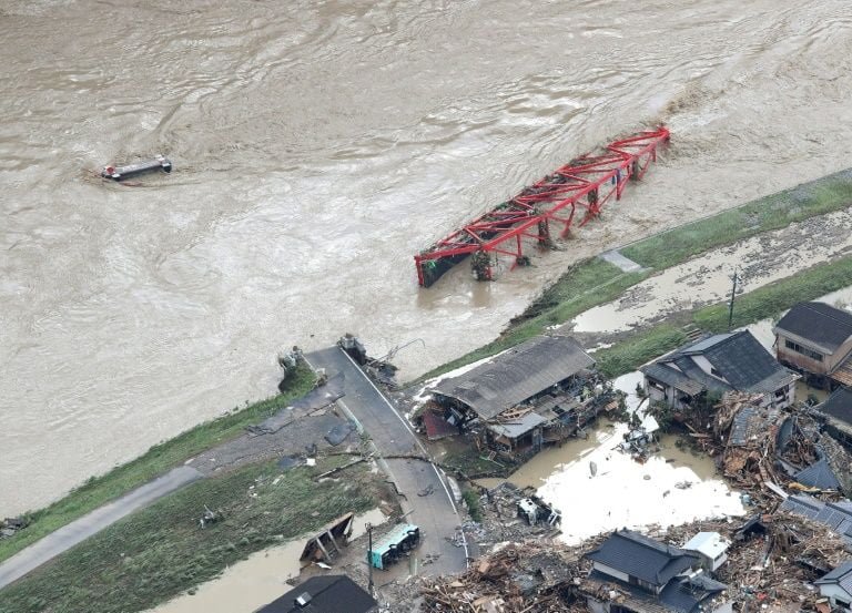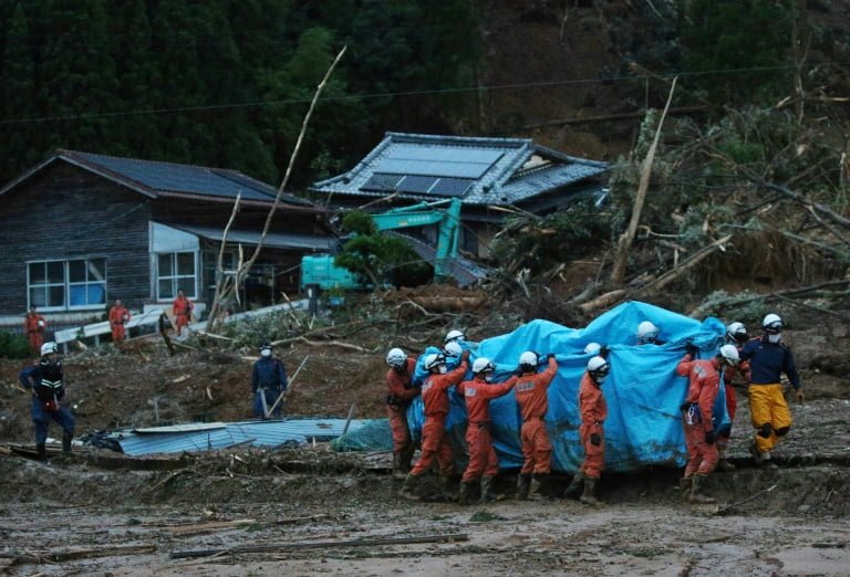 ဂျပန်နိုင်ငံတောင်ပိုင်းမှာ စံချိန်တင်မိုးရွာသွန်းပြီး ရေကြီး၊ မြေပြိုလို့ သေဆုံးသူ အယောက် ၂၀ထက်မနည်း ရှိလာပြီလို့ တာဝန်ရှိသူတွေက ပြောပါတယ်။