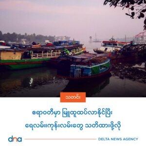 မြန်မာနိုင်ငံ မိုးလေဝသနဲ့ ဇလဗေဒ ညွှန်ကြားမှု ဦးစီးဌာနက ဒီကနေ့ ဒီဇင်ဘာ ၁၁ ရက် နံနက်ပိုင်းက တိုင်းထွာချက်အရ လာမယ့် ၁၀ ရက်အတွင်း ဘင်္ဂလား ပင်လယ်အော်အတွင်းမှာ လေဖိအားနည်းရပ်ဝန်း ဖြစ်ပေါ်လာနိုင်ပြီး ဧရာဝတီတိုင်းအပါအဝင် မြန်မာနိုင်ငံအနှံ့မှာ မိုးအနည်းငယ် ရွာသွန်းနိုင်တယ်သလို ၄ ရက်ဝန်းကျင်ခန့် မြူတွေထူထပ်စွာ ကျရောက်နိုင်တယ်လို့လည်း ခန့်မှန်းထားပါသေးတယ်။