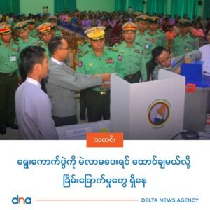 ဒီဇင်ဘာ ၂၈ ရက်နေ့ကျရင် ရွေးကောက်ပွဲ ပထမအသုတ်ကို မြို့နယ်ပေါင်း ၁၀၂ မြို့နယ်အတွင်း ကျင်းပတော့မှာဖြစ်ပြီး ပြည်သူတွေ အနေနဲ့ အာဏာသိမ်းစစ်တပ်က ဦးဆောင်လုပ်မယ့် ရွေးကောက်ပွဲကို သပိတ်မှောက်ဖို့ ၊ မဲရုံတွေသွားပြီး မဲမပေးပဲနေဖို့အတွက် ဖိအားတွေ ရှိနေပြီး ဧရာဝတီတိုင်းအတွင်းက ရပ်ကျေး အုပ်ချုပ်ရေးမှူး အချို့ကလည်း ရွေးကောက်ပွဲ မဲလာမပေးရင် ထောင်ချမယ်လို့ ခြိမ်းခြောက်မှုတွေ ရှိနေပါတယ်။