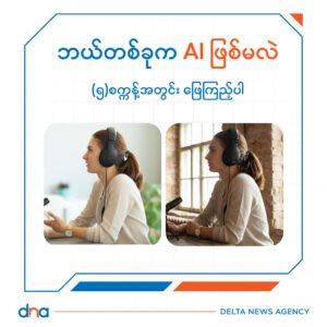 (Caption 3) AI လား ပုံအစစ်လား ဒီပုံနှစ်ပုံကို သေချာ ဂရုတစိုက် ကြည့်ရှုပေးပါ။ အမျိုးသမီးတစ်ယောက် အသံသွင်းနေတဲ့ ပုံစံတူ ပုံနှစ်ပုံ ဖြစ်ပေမယ့်၊ တစ်ပုံကတော့ ကင်မရာနဲ့ ရိုက်ကူးထားတဲ့ ပုံအစစ်ဖြစ်ပြီး၊ ကျန်တစ်ပုံကတော့ AI နည်းပညာနဲ့ ဖန်တီးထားတာ ဖြစ်ပါတယ်။ ဆုံးဖြတ်ချက် မချခင်မှာ…