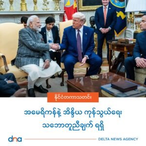 အမေရိကန်သမ္မတ ဒေါ်နယ်ထရမ့်ဟာ အိန္ဒိယဝန်ကြီးချုပ် နာရန်ဒရာမိုဒီနဲ့ ကုန်သွယ်ရေးသဘောတူညီချက်တခု ရရှိခဲ့တယ်လို့ကြေညာလိုက်ပါတယ်။
