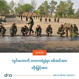 ပုသိမ် – မုံရွာလမ်းမကြီးတလျှောက်နဲ့ ရေကြည်မြို့နယ် မြောက်စမ်းအမြောက်တပ်ဝန်းကျင်မှာ တိုက်ပွဲတွေပြင်း ထန်နေတာကြောင့် စစ်တပ်ဟာ အင်္ဂပူမြို့နယ် ကွင်းကောက်မှာရှိတဲ့ တပ်မတော် လေ့ကျင့်ရေးသင်တန်းကျောင်း တတက(၅)မှာ အင်အားဖြည့်တင်းမှုတွေ လုပ်နေပါတယ်။
