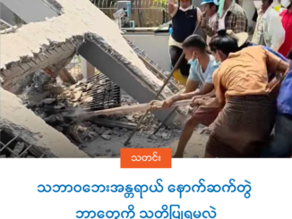 ဧပြီ ၁၅ ငလျင်နောက်ဆက်တွဲဖြစ်ပေါ်လာနေတဲ့ ကောလာ ဟလတွေအပေါ် အစိုးရိမ်မလွန်ကြဖို့နဲ့ကောလာဟ လ ဖြစ်စေ ကိုယ့်ထင်မြင်ယူဆချက် ဖြစ်စေ ပြောကြတဲ့အခါမှာ ပြည်သူကို စိုးရိမ်ထိတ်လန့်စေမယ့် အကြောင်းအရာတွေကို ထိန်းသိမ်း ရပ်တန့်ပေးကြဖို့ ငလျင်ပညာရှင်တွေ အပါအဝင် သဘာဝပတ်ဝန်း ကျင်အရေး [ဆက်လက်ဖတ်ရှုရန်]