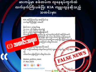 ဖားကန့်မှာ စစ်တပ်က လူနေရပ်ကွက်ထဲ လက်နက်ကြီးပစ်ပြီး KIA ကျူးလွန်ဆိုသည့် သတင်းမှား ၂၀၂၅ခုနှစ်၊ နိုဝင်ဘာလ၊ ရက်။ (Fact-check _DNA/ The Red Flag) အနှစ်ချုပ် “ဖားကန့် ဆိပ်မူရပ်ကွက်(၁) [ဆက်လက်ဖတ်ရှုရန်]