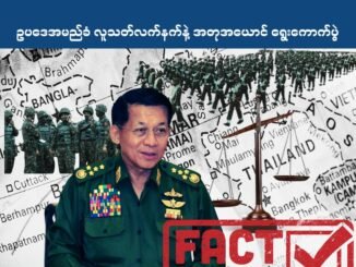 ဥပဒေအမည်ခံ လူသတ်လက်နက်နဲ့ အတုအယောင် ရွေးကောက်ပွဲ (FactCheck_DNA) ၂၀၂၆ ဖေဖော်ဝါရီ ၂၅ အာဏာသိမ်းစစ်တပ်ဟာ ပြီးခဲ့တဲ့ ၂၀၂၁ ဖေဖော်ဝါရီ ၁ ရက်နေ့က ၂၀၂၀ ရွေးကောက်ပွဲမှာ မဲမသမာမရှိတယ်ဆိုတဲ့အကြောင်းပြချက်နဲ့ [ဆက်လက်ဖတ်ရှုရန်]